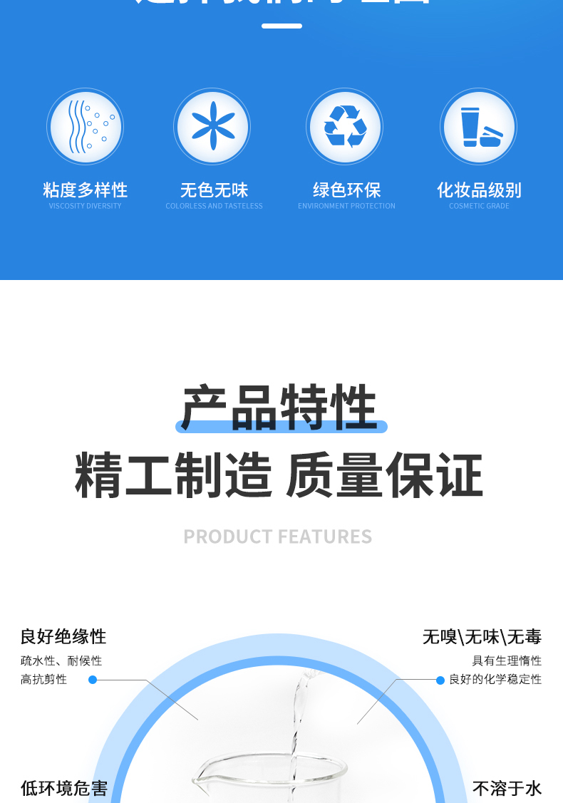 集研发,创新,生产,销售相结合,重点以生产研发有机硅新材料:以二甲基硅油、乙烯基硅油为主,以羟基硅油、有机硅乳液,氨基硅油,纺织助剂为辅的多元化化学工厂。